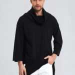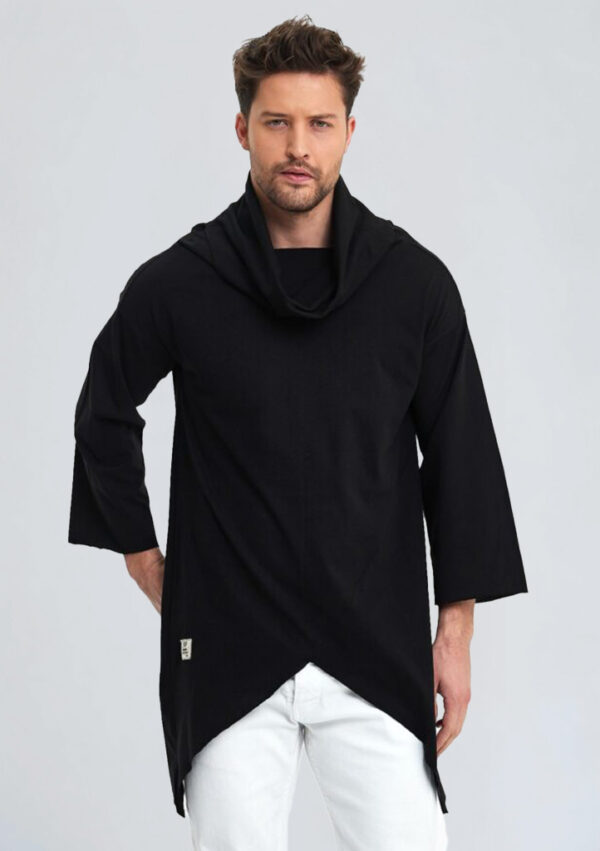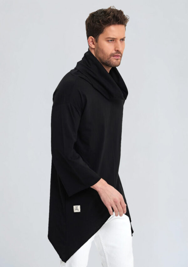 Modern ve özgün bir görünüm sunan bu panço, asimetrik kesimi ve boğazlı yaka detayıyla şıklığı ve konforu bir arada sunar. Oversize kalıbı ve yarasa kol formuyla geniş bir kullanım alanı sağlar. %100 pamuk triko kumaşı, sıcaklığı dengelerken nefes alan yapısıyla gün boyu rahatlık sunar. Siyah düz tasarımı sayesinde her daim zarif ve sade bir duruş sergiler.