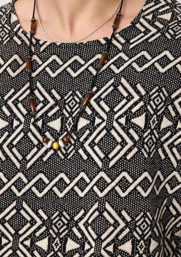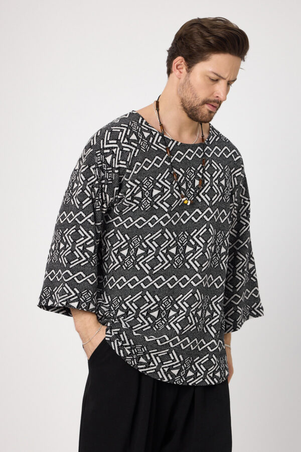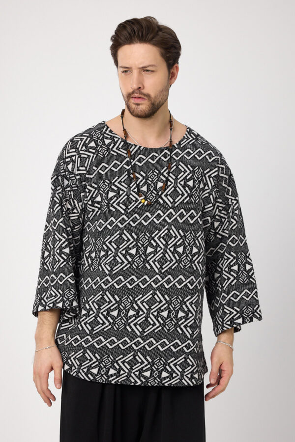 Oversize ve bohem esintileri taşıyan bu sweat, geniş yaka ve fakir kol detaylarıyla rahatlığı ve stilin zarafetini bir arada sunar. Etnik desenler ürüne otantik bir hava katarken, yumuşak kumaşı sayesinde gün boyu konfor sağlar. Gündelik kullanımda veya rahat kombinlerde, şıklığı sade bir şekilde ifade etmek isteyenler için ideal bir seçimdir.